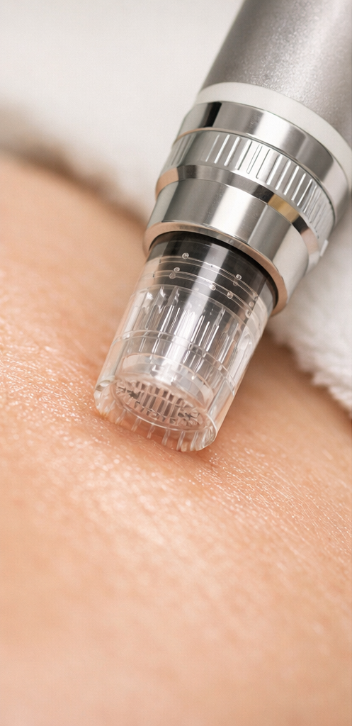 A precision device delivers controlled micro-channels into the skin's surface. This triggers the body's natural repair response — stimulating the production of new collagen and elastin. Treatment typically takes 30 to 60 minutes, depending on the area.