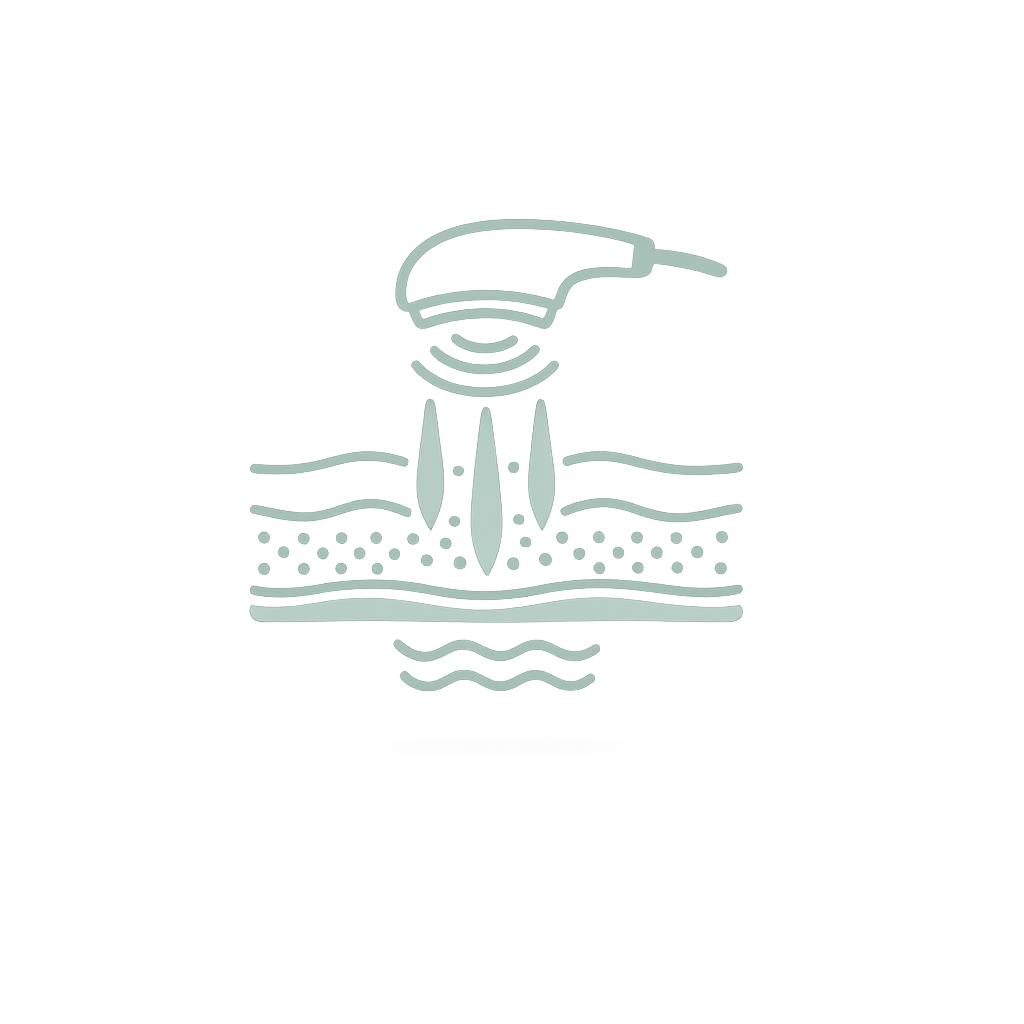 Radiofrequency energy gently heats the deeper layers of the skin.